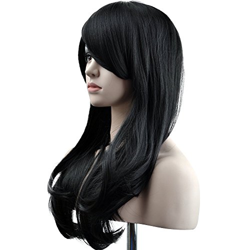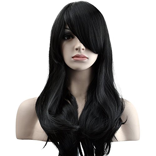 Ambielly 28" Wig Long Curly Wavy Women's Hair Cosplay Costume Wig (New Black)
