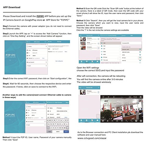 Free App P2PIPC for iOS iPhone and Android smartphone/tablet, Remote access on smartphone or PC client software. Two years free replacement of spare parts warranty.