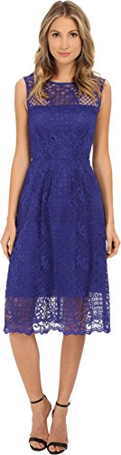 Illusion yoke and hem fit and flare sleeveless lace dress