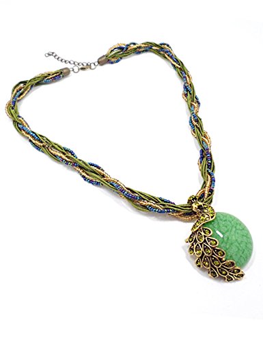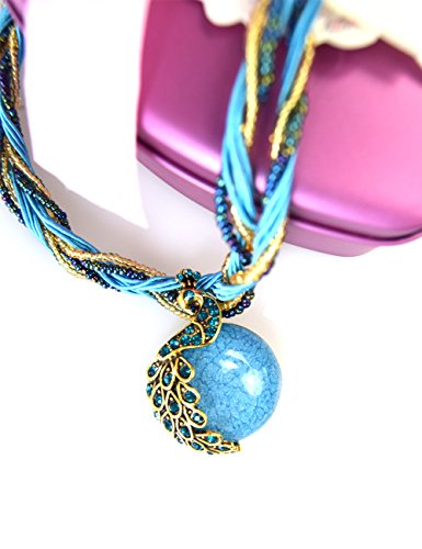 -. Feature : It's a perfect accessory to your outfit and it very suitable for wedding dress, evening dress, casual sweater and so on / Length:chain: 18 "(43 cm) ,Pendant:Width x Height:1.38" x 1.96" ( 3.5 x 5 cm) / Material:Opals bronze alloy, crystal, resin, wax, plastic beads(Lobster clasp adjustable) / Imported. The delivery is usually within 7-14 business days / I hope that this vivid peacock necklace can be your patron saint