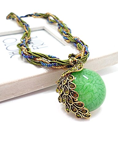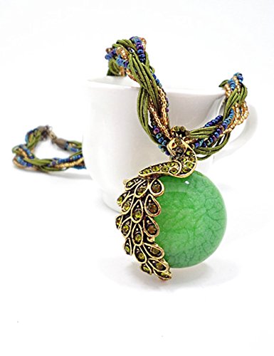 -. Title : LIKEOY Vintage Bohemia Vivid Peacock Pendant Necklace with Opal Crystal
