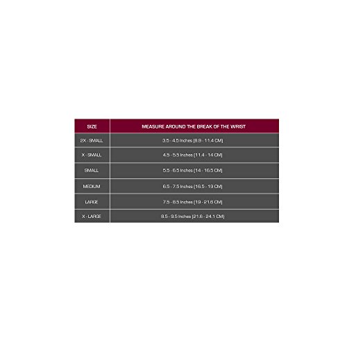 Measure around the break of the wrist. Available Sizes: 2X-Small (3.5-4.5 Inches), X-Small (4.5-5.5 Inches), Small (5.5-6.5 Inches), Medium (6.5-7.5 Inches), Large (7.5-8.5 Inches), and X-Large (8.5-9.5 Inches).