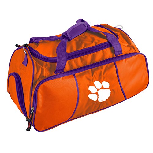 College-themed gym bag contains two end handles and removable shoulder strap Fans shop tote features luggage attachment band on the side Sports bag's large front pocket includes holders for pens, ID and coins Made of 600 denier polyester Measures 22 inches long x 12 inches high x 10 inches deep Model number 123-72 0