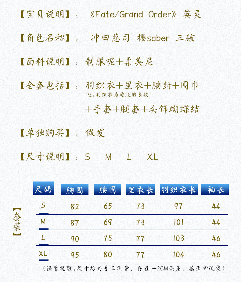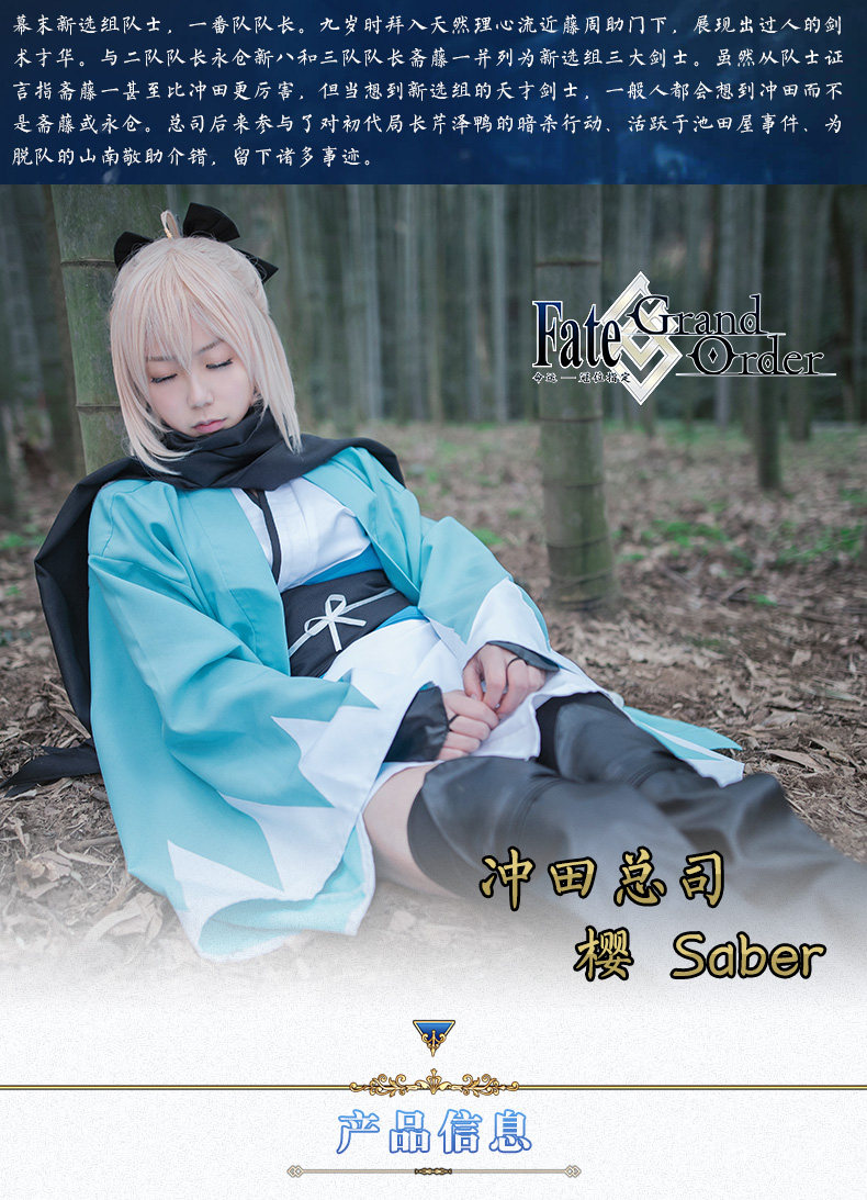 Fate/Grand Order 冲田总司三破cos服 和风短和服 现货