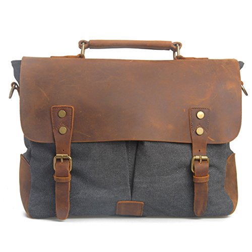 -. Brand : Estarer -. ClothingSize : Medium -. Color : Dark Grey -. Department : unisex-adult (novelty and lage only) -. EAN : 0799559863227 -. Feature : Estarer messsenger bags are high quality canvas/leather products which impress through excellent quality and timeless design. / The vintage fashion design of genuine leather flap with buckle decoration is absolute an eye catcher. An ideal companion for your one successful day. / Excellent and practical structure with many spacious pockets, the main compartment fit A4 file, the laptop compartment is for as much as 14 Inch laptop / Magnetic snap closures makes things easy to store and to take out; Shoulder straps: adjustable and removable strap / This canvas leather messenger bag(MBM0076) is idea to use as laptop messenger bag, laptop bag, college bag, school bag, canvas messenger bag, shoulder bag, carry-on bag, canvas bag for men/women/boys/girls or gift. -. ProductGroup : Apparel -. ProductTypeName : LAGE -. Size : Medium -. Title : Estarer Mens/Womens Vintage Leather Canvas Laptop Messenger Bag Dark Grey -. UPC : 799559863227