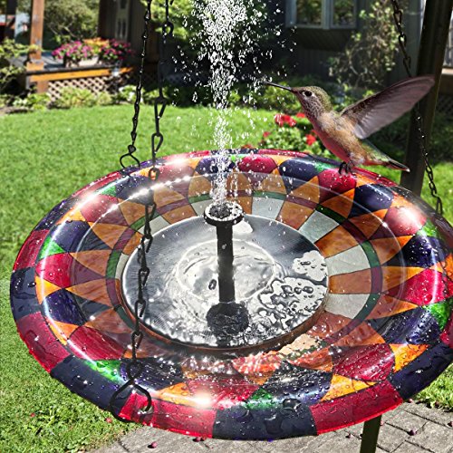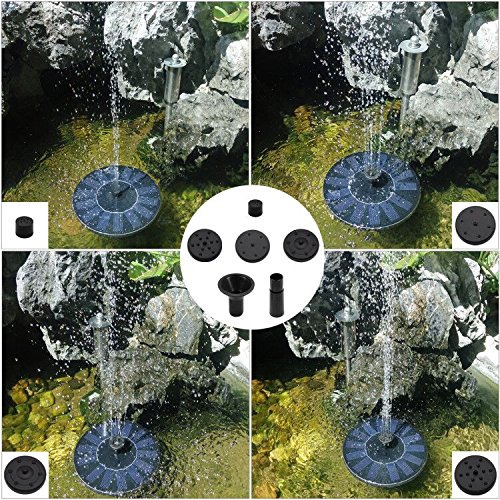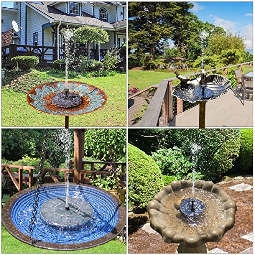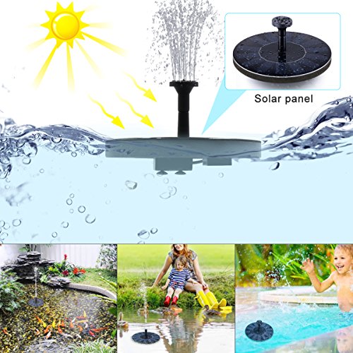 - Upgraded Solar Fountain Bird Bath Pump: no battery or electricity needed, just floating the fountain on the water and it runs automatically in 3 secs when the sun hit the solar panel.