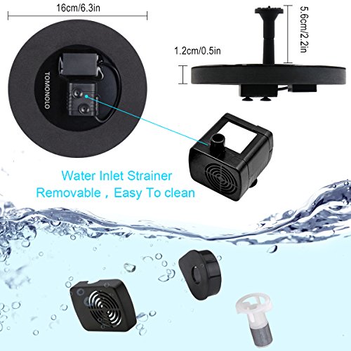 - TOMONOLO fountain can aerates the water and keep water circulating. very suitable for bird bath, attracting birds to bring your garden vitality. you can also use it for fish tank, small pond, pool, garden decoration, water circulation for oxygen and etc. 12 months warranty:100% warranty and friendly customer service.