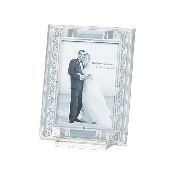 ラメや、すりガラス調の印刷を施したガラスにスワロフスキークリスタルをちりばめたエレガントなフォトフレームです。ウエディングギフトやウェルカムボードとしてもご使用いただけます。 |