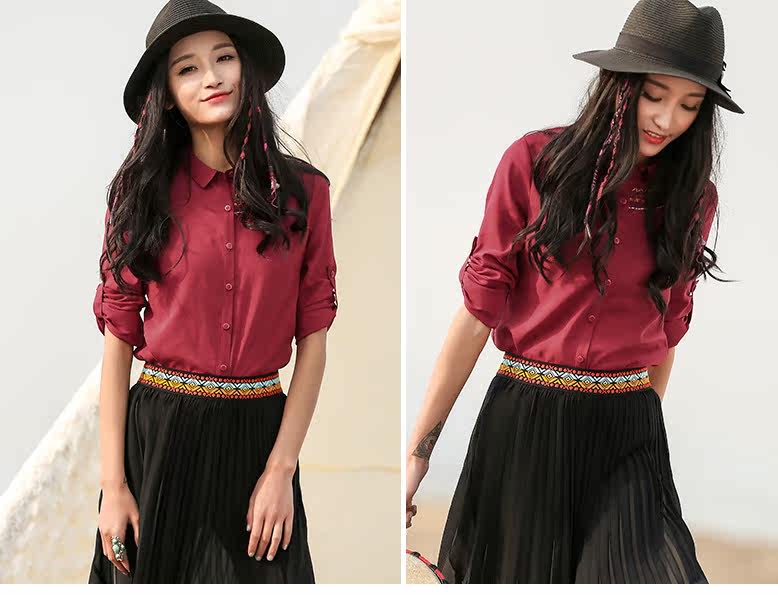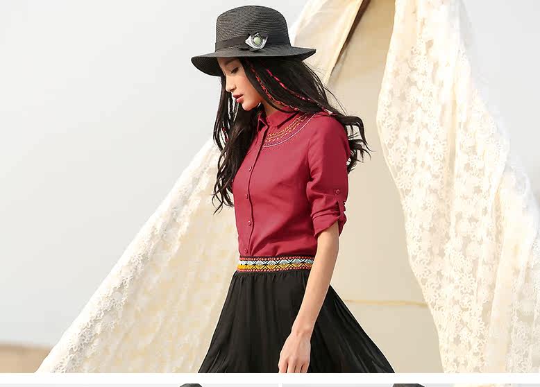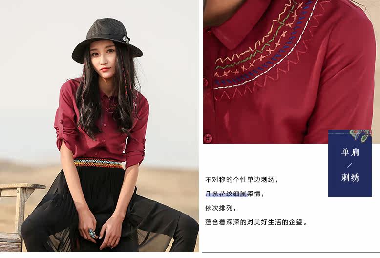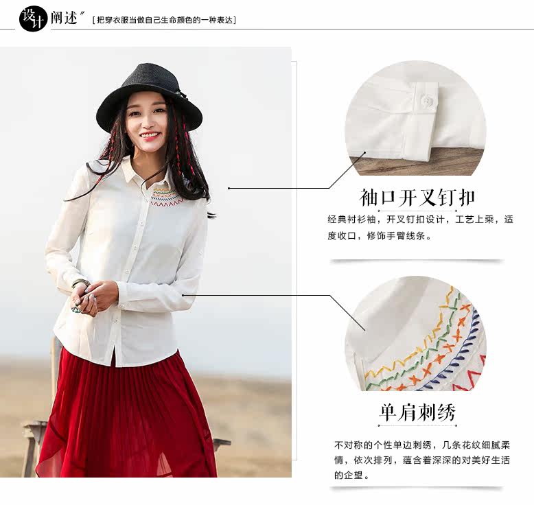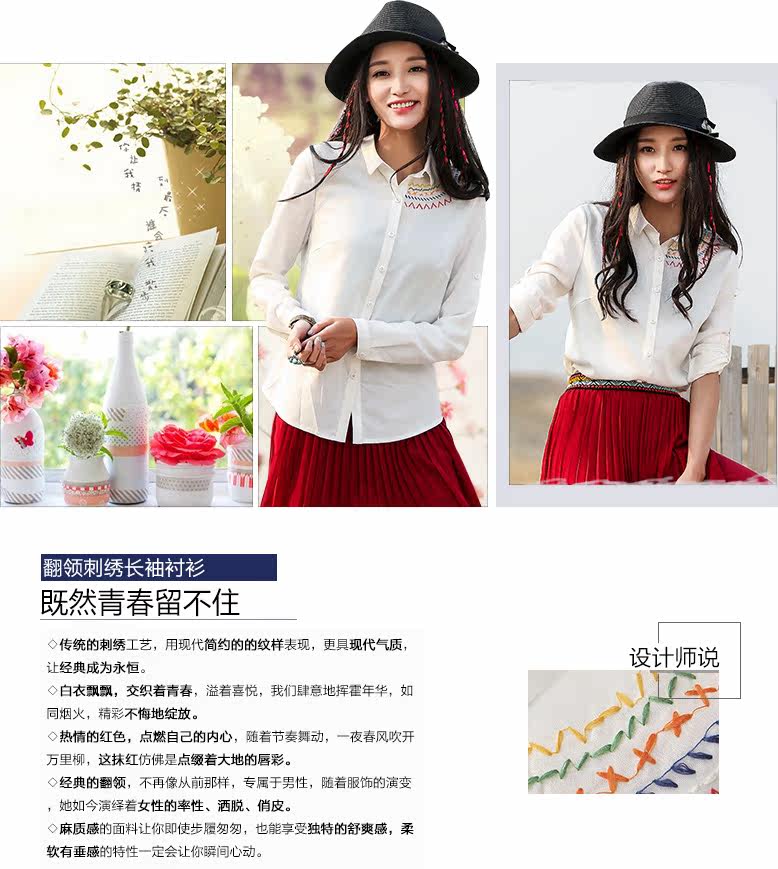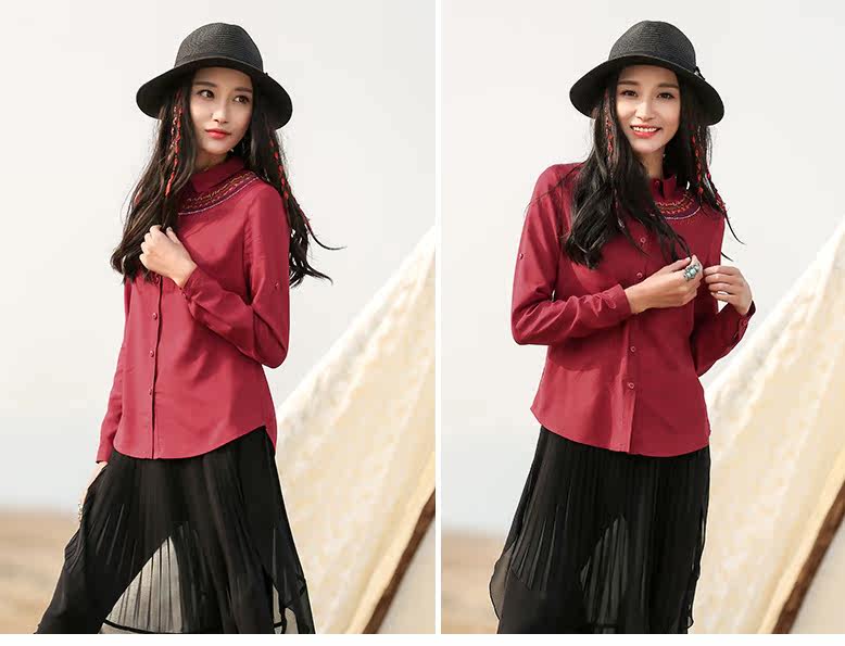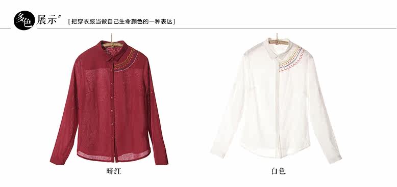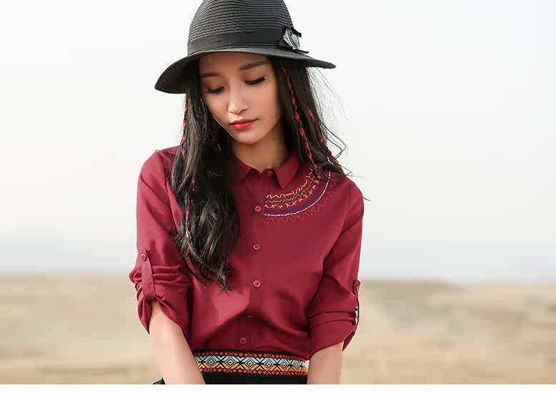 翻领刺绣长袖衬衫