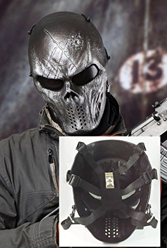 -. Binding : Misc. -. Brand : ATAIRSOFT -. Color : Skull FIre -. Feature : ★ (Non-FBA) Standard Shipping 8-15 days to USA from Hong Kong China. / ★ Metal mesh goggle offer best protection and never fog up in the game. / ★ Ballistic Protection: Approx. 600 FPS with 6mm 0.20g BB. ★ Durable and withstand high impact. / ★ Size: Approx 27 x 21.5 x 17cm (L x W x H) ★ Cushion padding inside for comfort wearing. / ★ Made by high quality hard ABS material ★ Adjustable elastic strap ★ Weight - 370 g -. IsAutographed : 0 -. IsMemorabilia : 0 -. Label : ATAIRSOFT -. Manufacturer : ATAIRSOFT -. ProductGroup : Sports -. ProductTypeName : SPORTING_GOODS -. Publisher : ATAIRSOFT -. Studio : ATAIRSOFT -. Title : ATAIRSOFT Airsoft Paintball Hockey Full Face Metal Mesh Eye Bb Protect Full Face Mask Cosplay M06