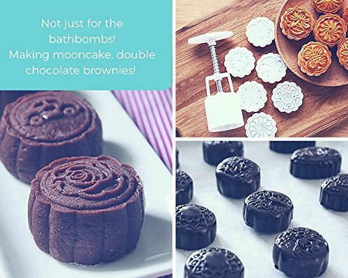 - GRAB THE COUPON WHEN YOU BUY as INTRO OFFER~. PROFESSIONAL GRADE - Our sleek and smooth Top Grade Aluminum Alloy bath bomb and mooncake press set is perfect for different types of your DIY creations and multifunctional.