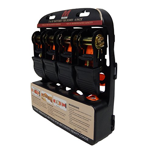 Mann Ratchet Tie Downs Straps with S-hooks 4-Pack Set 1-Inch x 15-Feet 500 Lbs Load Cap - 1500 Lb Break Strength B01AIWGAG2