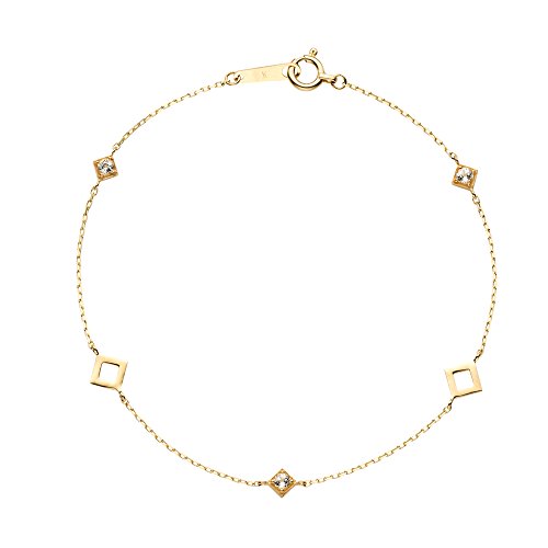 -. Feature : K10YG・ホワイトトパーズ / 全長:約17cm パーツ:最大幅約5.5mm / スクエアフレームのパーツとホワイトトパーズのパーツが交互に配されたブレスレット。イエローゴールドの艶感とうるうるとした石のきらめきがやわらかな光を放ち、デイリースタイルに大人っぽいニュアンスをプラスしてくれます。さり気なく存在感のあるブレスレットは時計や他のブレスレットとの重ね着けもおすすめです。 / トパーズ