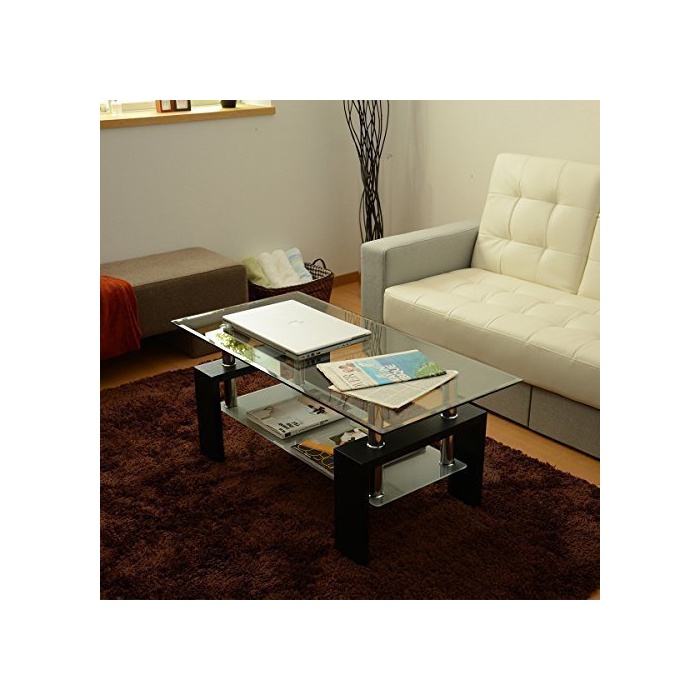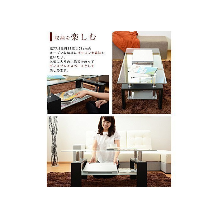 (DORIS) 유리 테이블 로우 테이블 센터 테이블 강화 유리 【Raster 블랙】 응접 가구 응접 테이블