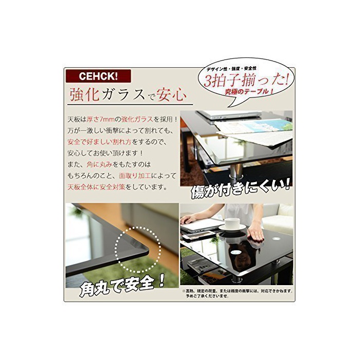 (책상이나 카운터의) 널찍하고 평평한 윗부분은 두께7mm의 강화 유리를 채용!만일 거센(심한) 충격 로 인해 갈라져도안전하고 마음에 든 붕괴 분(쪽,편)를 하므로,안심하고 사용하실 수 있습니다.또한모퉁이에 둥근 모양도 #의는 물론이고,면잡기 가공 로 인해 (책상이나 카운터의) 널찍하고 평평한 윗부분 전체로 안전 대책을 하고 있습니다.