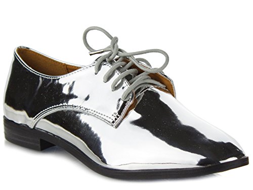 -. Title : ROF Mirror Metallic Lace Up Oxford Flat