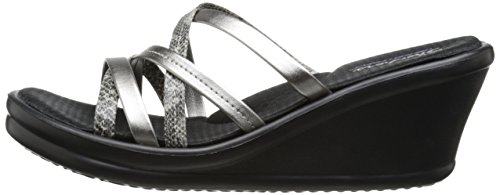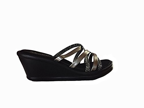 Studio : Skechers Cali Footwear Publisher : Skechers Cali Footwear Binding : Shoes Product Description Be the life of every party wearing the SKECHERS Rumblers - Social Butterfly. Smooth metallic and snake print faux leather upper in a wedge heeled strappy slide comfort casual sandal with stitching accents and Memory Foam footbed. Stitching accents. Criss crossing slide straps with texture contrasts. Smooth strap lining. Memory Foam cushioned comfort footbed. Arch cushion for added comfort and support. Lightweight flexible midsole. 1/2 inch midsole height. 2 1/4 inch total wedge heel height. Flexible traction outsole. 0