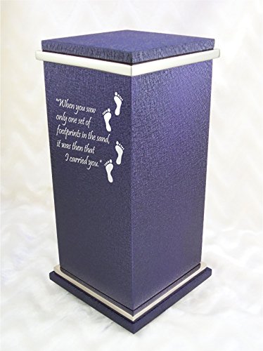 PERSONALIZED Custom Engraved Footprints Cremation Urn Vault by Amaranthine Urns, made in the USA, Peyton RG Painted Silver (up to 250 lbs living weight) (Gloss Black Onyx)