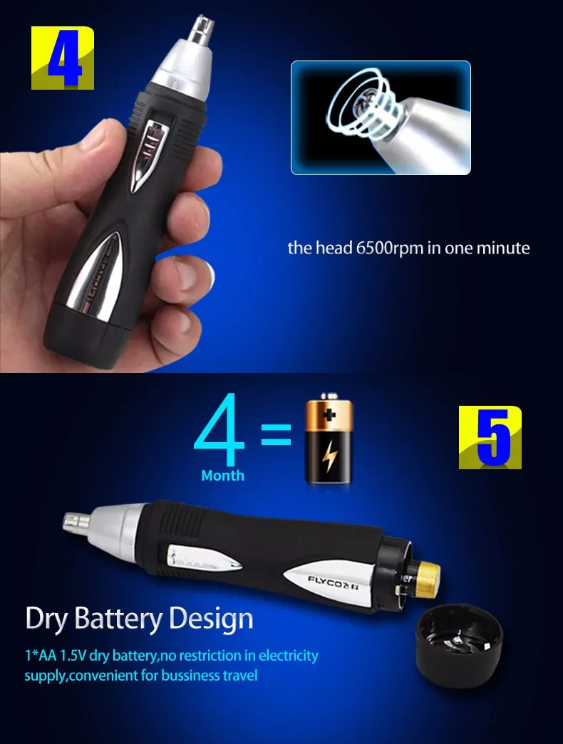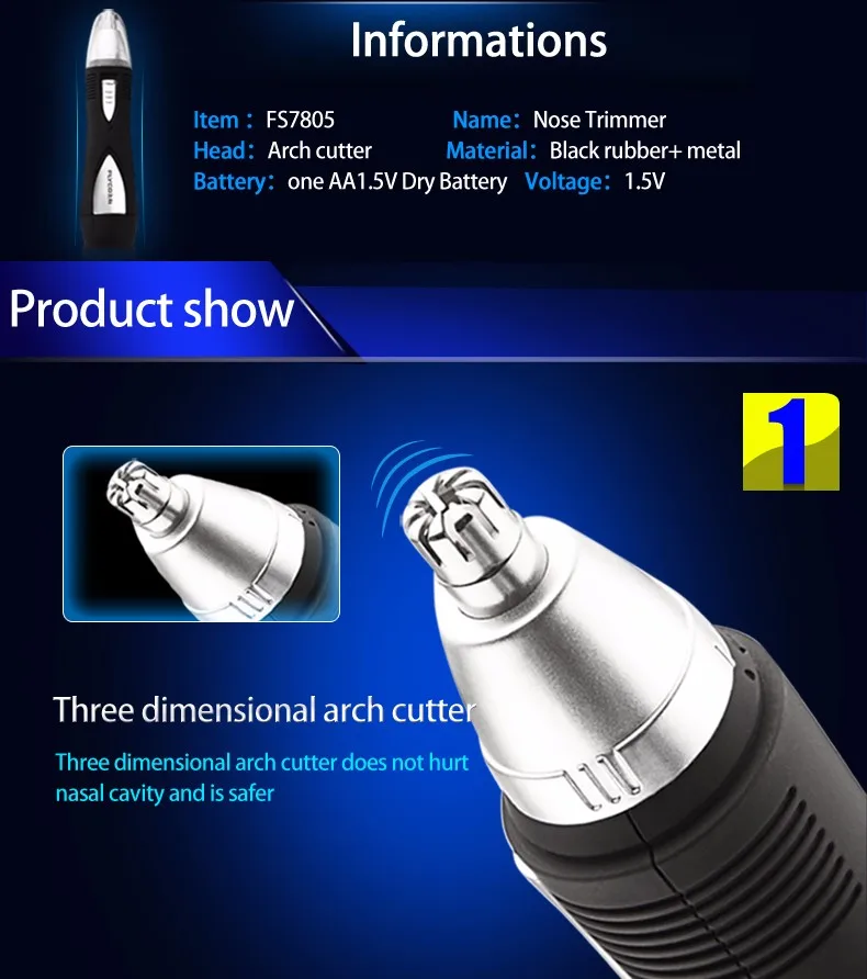This trimmer is designed for cutting nose and ear hairs. Do not attempt to use it for any other purpose.