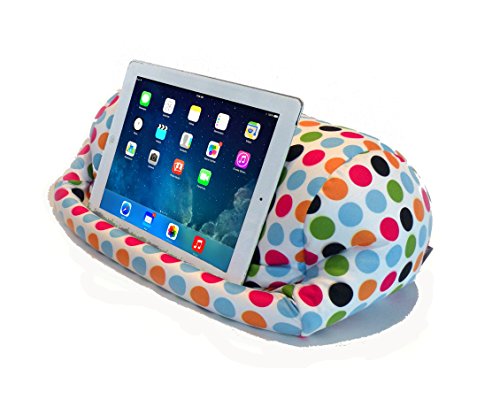 LAP PRO - Stand/Caddy, Universal Beanbag Lap Stand for iPad Pro, iPad Air,1,2,3 & all Tablets, E-Readers, Books & Magazines - Bed, Couch, Travel - Adjustable Angle; 0 - 89 deg. (Polkadot)