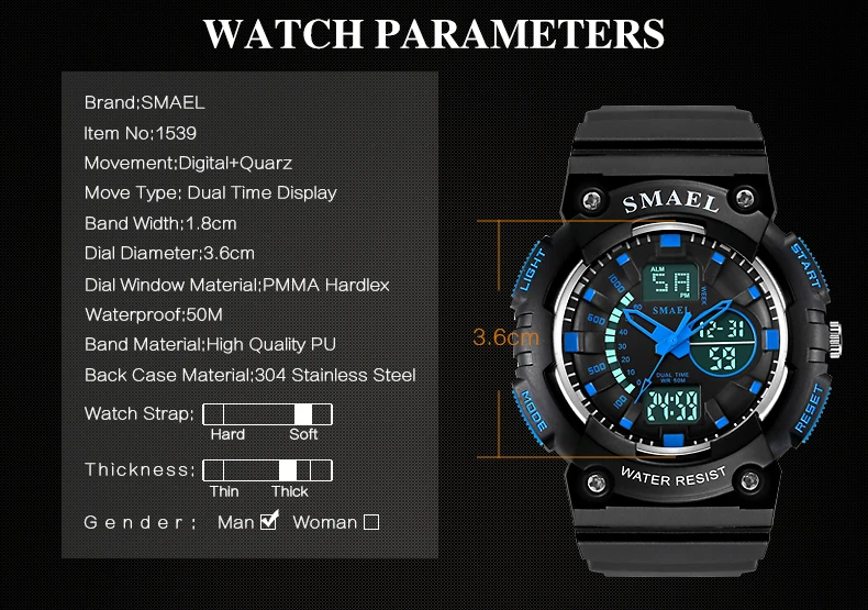 Model Number:SMAEL Sport Men Watch-1539