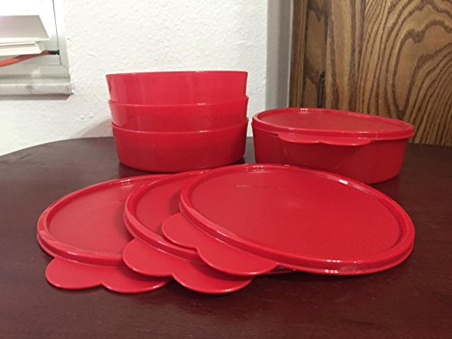 Tupperware Big Wonders Cereal/Soup Bowls w/seals Set of 4 in Passion Red