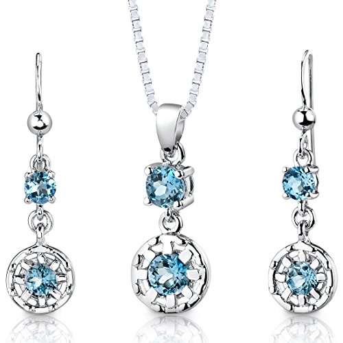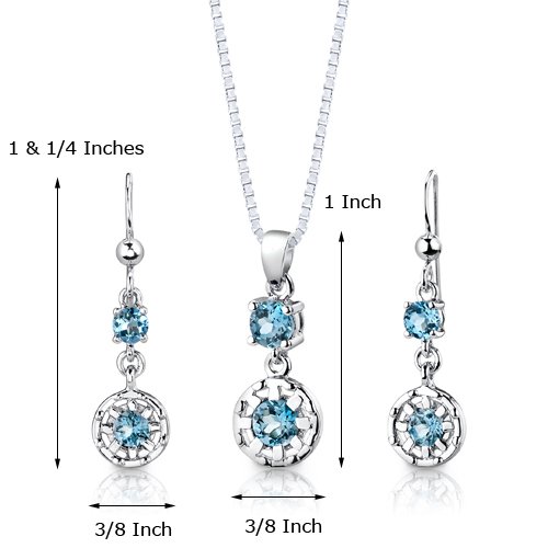 -. Feature : Swiss Blue Topaz, Deep Sky Blue Hue, Brilliant Sparkle / Pendant and Earrings are in .925 Sterling Silver and finished with Rhodium / Top Quality Craftsmanship / Exceptional Styling / 30 Day Return Policy