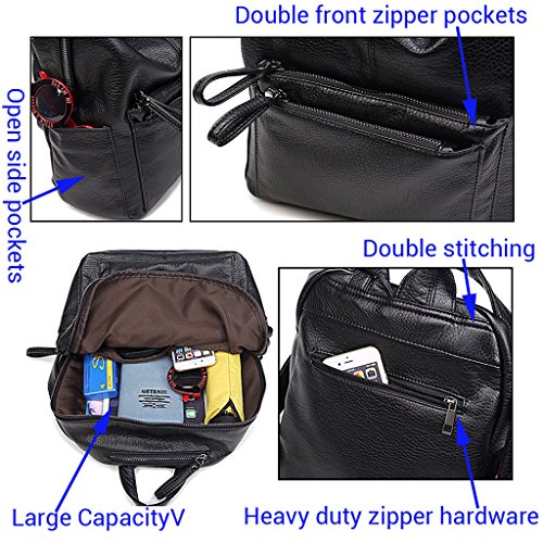 -. Brand : UTO -. ClothingSize : Large -. Department : womens -. Feature : HIGH QUALITY - Ultra soft synthetic washed leather with modern black hardware, waterproof and anti-scratch. 2 adjustable back straps and 1 top loop handle. / WELL DESIGN - Heavy duty zipper hardware. Detailed streamlined stiching. Full-lined coffee fabric lining. / LARGE CAPACITY - Interior contains 2 open pockets and 1 zipper pocket. Exterior: 2 front zipper pockets, 1 keys/coins top zipper pocket, 2 open Pockets and 1 back zipper pocket. / EXTREMELY PRACTICAL - Comfortably holds a 13.3" MacBook, tablet or a laptop 13" and under. Exterior pockets can hold your smartphone and other essential items. / DIMENSIONS - 10.23"L x 4.33"W x 12.40"H. Weight: 1.50 pounds. Adjustable back straps length: 36.41". Top Loop Handle drop: 3.14". -. ProductGroup : Apparel -. ProductTypeName : APPAREL -. Size : Large -. Title : UTO Women Fashion Backpack Purse PU Washed Leather Ladies Daily Rucksack Shoulder Bag