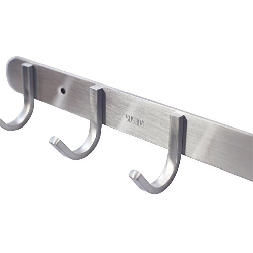 - MODERN APPEARANCE - Each PREMIUM Wall Mounted Hook Rack has our Modern design, with solid 304 stainless steel, beautiful round hooks making it the perfect rack for your home, office or industrial environment. Our PREMIUM Hook Rack is brush finished and have hidden mounting plugs.