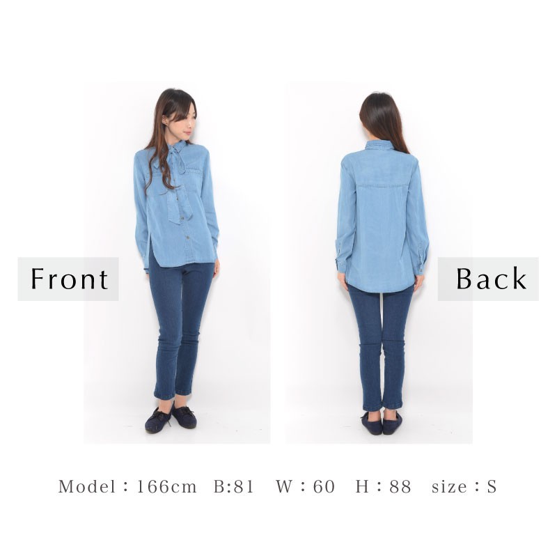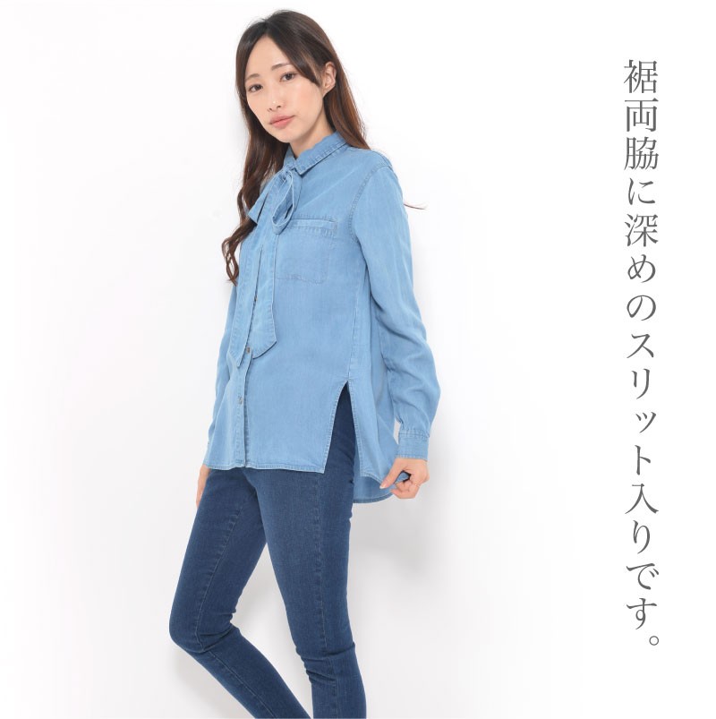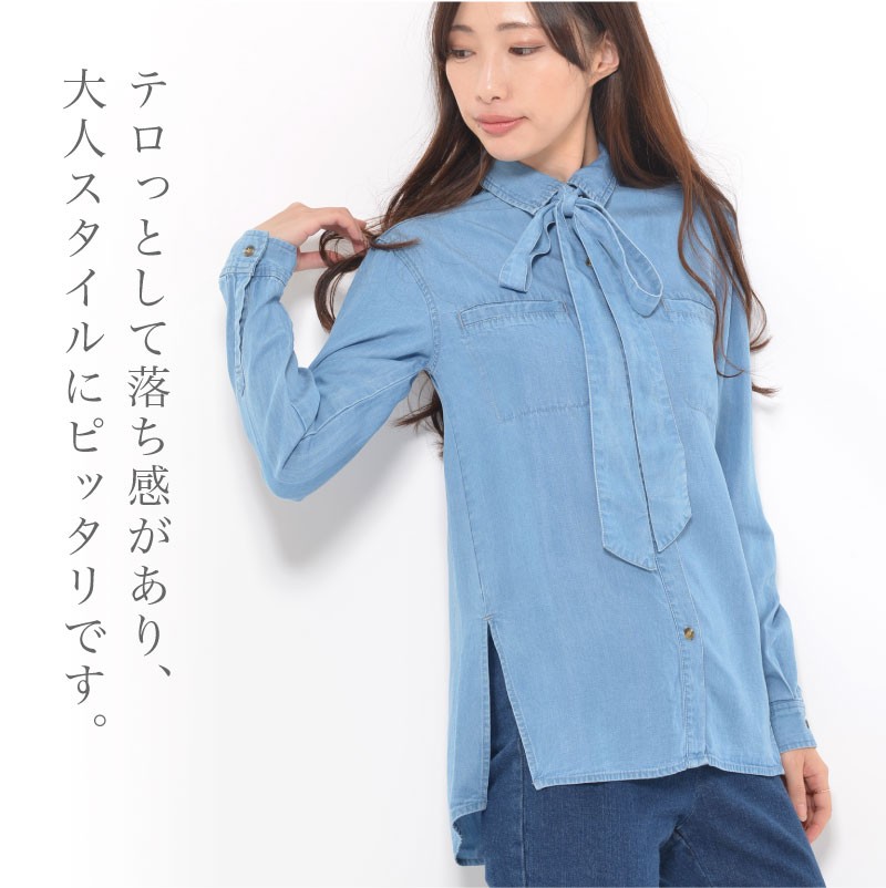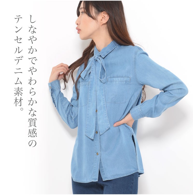 ボウタイを付ければフェミニンな装いに、外せばシンプルなシャツブラウスとして着用できます。