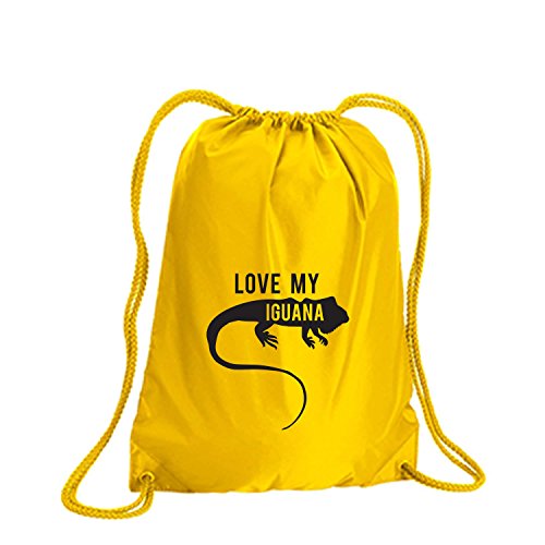 Product Description This durable and stylish nylon tote features "LOVE MY IGUANA" on a cinch pack tote with black ink. Bag comes in small and large sizes and is made of a durable 210 Denier nylon and has color-matched draw cords. Printed in the USA on an imported bag. 0