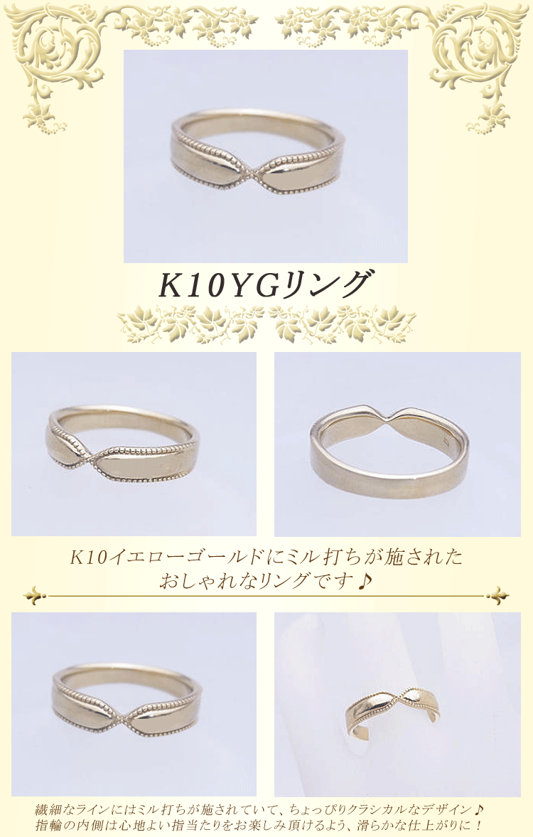 商品説明 K10イエローゴールドのミル打ち使用のリングです。