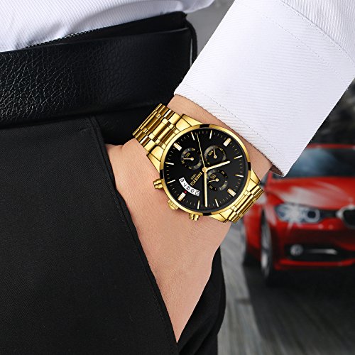 MATERIAL: High quality golden stainless steel band with double push button clasp, Precise Japan quartz movement.