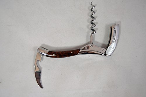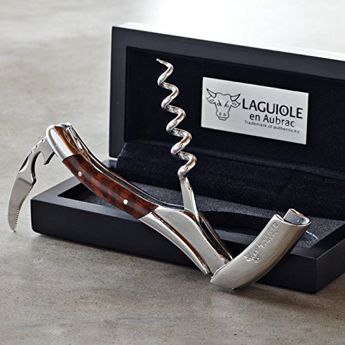 -. Brand : Laguiole en Aubrac WineSpirit Corkscrew -. Color : Brown -. EAN : 0011200332174 -. Feature : The corkscrew and foil cutter are forged from ultra-strong Sandvik polished stainless steel / The contoured handle is hand-crafted from a precious wood from South America called amourette / The decorative chasing on the metal spine serves as the signature of the craftsman who made the tool / Includes a serrated foil cutter with built-in bottle opener / Made in France -. Label : Laguiole En Aubrac -. Manufacturer : Laguiole En Aubrac -. Model : SOM99AMI/LSI1 -. MPN : SOM99AMI/LSI1 -. PackageQuantity : 1 -. PartNumber : SOM99AMI/LSI1 -. ProductGroup : Kitchen -. ProductTypeName : KITCHEN -. Publisher : Laguiole En Aubrac -. Studio : Laguiole En Aubrac -. Title : Laguiole En Aubrac Waiters Corkscrew - Amourette | SOM99AMI -. UPC : 011200332174