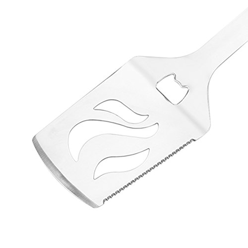 MULTI-FUNCTION SPATULA: The 2 Inches Width Spatula will Works Well on Stir Frying and Shovelling the Residue. The Special Design of Beer Opener can Easily Help You Liven Up the Atmosphere of the Dine Together, and the Serrations on the Side will be Convenient. A Knife is No Longer Necessary.