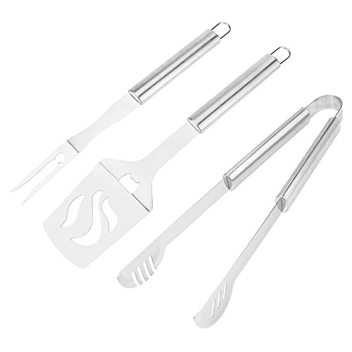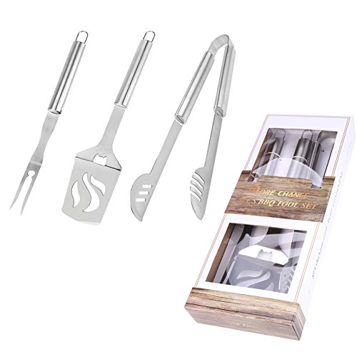 Newmany 3PCS BBQ Set Gift-Wrap Food Grade Stainless Steel Multi-function Spatula, Opener, Fork, Tongs 3 in Pack Easy to Hang Suitable for Home Graden Outdoor Camp