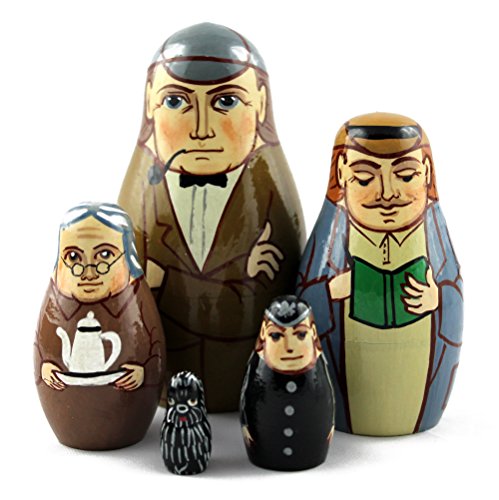 -. Title : Sherlock Holmes Matryoshka Wooden Nesting Russian Dolls Movie, Room Decoration Ideas Wooden Dolls That Stack Gifts Decor Handmade Art, 5pc