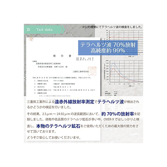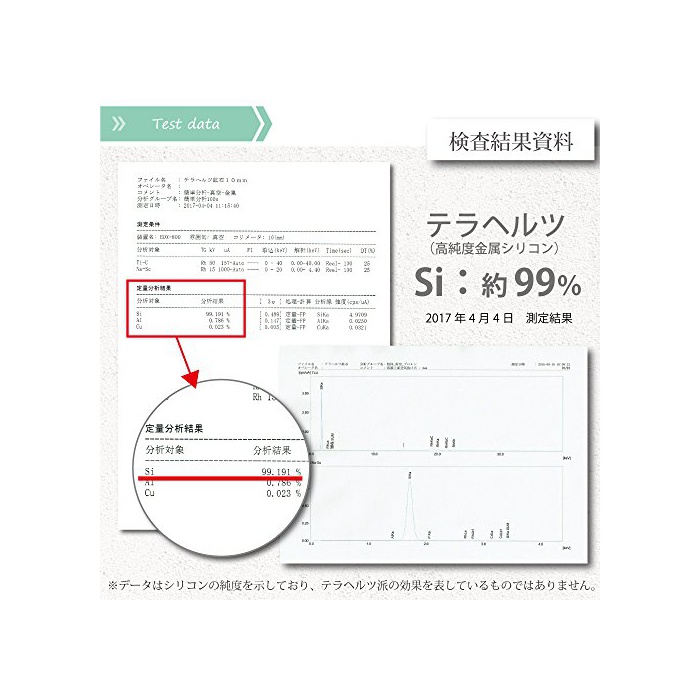 《공적 기관에 있어서의 검사,순도,방사율에 대해서》 terahertz 광석의 인기로 정반대로《헤마타이토》를 코팅 한 가짜도 나돌고 있습니다.당점에서는 확실히 진짜를 손에 넣어 받기 때문에(위해)에 몇 번이나 검사를 하고 있습니다.우선,terahertz 광석의 순도에 대해서이지만,검사표 화상을 보고 주시면 알지만 금속 실리콘99.191%의 고순도인 것부터,《헤마타이토》에 모조한 가짜는 아니고 고품질인 terahertz 광석인 일이 압니다.외에점풍으로 규소100%이라고 하는 설명을 본 일이 있지만,검사해 둬 불순물이 반드시 있기 때문에100이라고 하는 숫자는 있을 수 있지 않습니다.통상의 검사는 아니고 간이인 검사 라면 당점도 100%입니다.또한 terahertz 광석의 순도 만이 아니고, terahertz파의 방사율의 검사도 하고 있고, 약70%의 높은 방사율을 기록 하고 있습니다.여러분에게 안심하고 진짜 고품질의 terahertz 광석을 몸에 대어 해 주시면과 생각합니다.