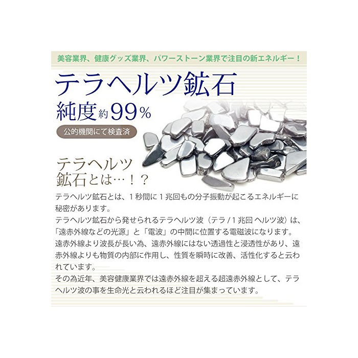 《지금 화제의 terahertz 광석을 알고계심 입니까!?》 terahertz 광석이란,미용 업계,건강 상품 업계,파워 스톤 업계에 주목 되고 있는 신에너지,terahertz파를 방사하는 인공 광석입니다.1 초사이에 1조회나 되는 분자 진동이 일어나는 것부터,테라(1조회1TERA)Hertz파(주파수)즉 terahertz파라고 해 있습니다. 그 terahertz파의 주파수는,1조Hz~100조Hz의 사이에(서),파장은 3μm~1000μm이라고 하는광과 전파의 양방의 성질을 겸하고 있습니다.수년전 까지는 드물었던 terahertz 광석은 0 수만엔도 하는 대용품이었습니다만,폭발 적인 인기로 가공 기술이 진보하고, 또한 terahertz 공장 보다 직접적인 대량 매입에 의해 도매업자씨와 같은 가격(Amazon특가)를 실현 생겼습니다. ※정말로 품질이 좋은 terahertz 광석은 사소하지만 하고, 매입 상황에 의해 가격 인상 하기 때문에 승낙 해 주십시오.