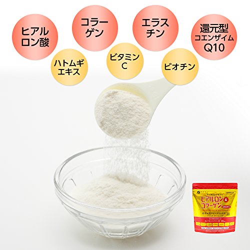 本品では、1日7gあたり低分子化したヒアルロン酸を150mg摂取、ヒアルロン酸と共同で働くコラーゲン、エラスチンを配合し、さらにサポート成分としてハトムギエキス、ビタミンC、ビオチンを採用しています。また、カネカ社製の還元型コエンザイムQ10も配合しており、まさに弾力のある活き活きした若々しさを取り戻す目的のサプリメントとなっております。