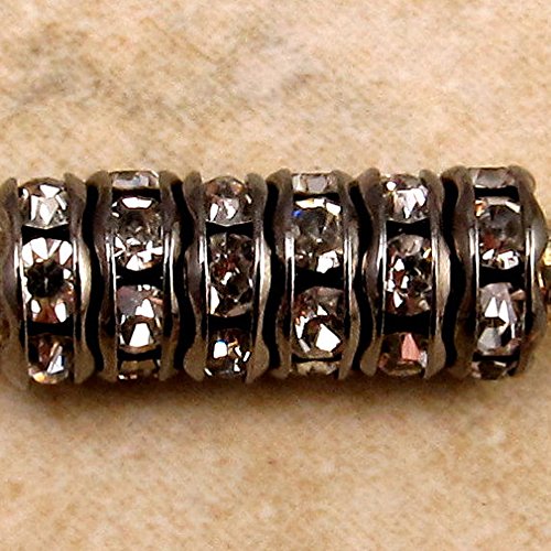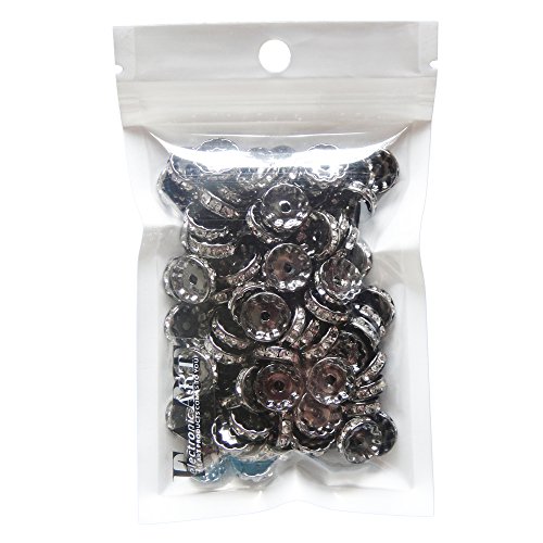RUBYCA 100pcs Round Rondelle Spacer Bead Gunmetal Black 8mm White Clear Czech Crystal