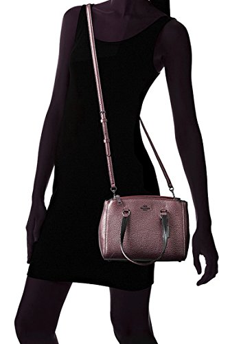 -. Brand : Coach -. Department : womens -. Feature : Metallic leather / 9 3/4" (L) x 7 1/4" (H) x 4 1/4" (W) / Handles with 5 1/2" drop; optional adjustable strap with 22" drop for crossbody wear / Tab snap closure; footed bottom / Two zip compartments flank a center compartment with zip, cellphone and multi-function pockets -. Model : 36877 -. ProductGroup : Shoes -. ProductTypeName : HANDBAG -. Title : Coach Stanton Carryall 26 in Metallic Pebbled Leather 36877 Refined metallic leather lends a soft glow to the new Stanton Carryall, a bag with the effortless chic of the downtown New York street it was named for. The design is finished with slender straps, understated hardware and an elegantly organized interior.