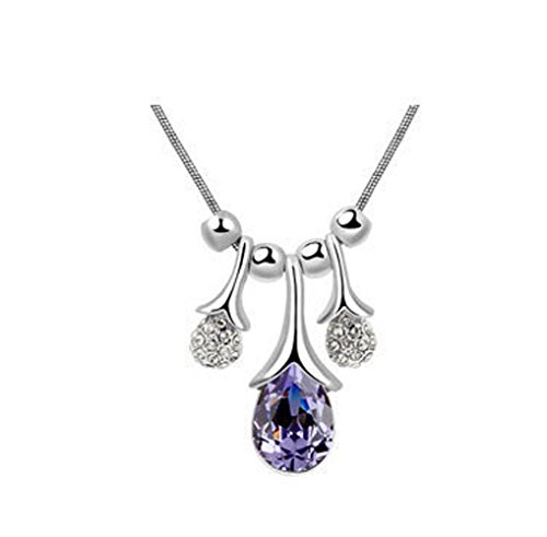 -. Title : Women's Jewelry Grace Charm Crystal Lotus Purple Waterdrop Pendant Chain White Plated Gold Necklace