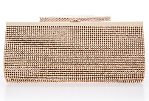 Product Description The glamorous evening party clutch features allover sparkling crystals on the front of this chic shaped clutch. It features clasp closure and detachable chains which offers versatile carrying options as handbag, clutch, a shoulder bag or a cross-body bag.