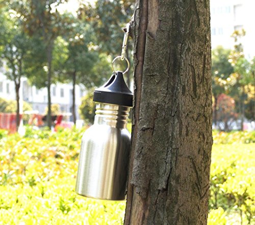 -. Feature : Electropolished 304 stainless steel body and FOOD GRADE PP Lid, easy to clean, durable, inert, sanitary, sustainable, toxin-free and non-leaching / Height 7", Diameter of Bottom 3", Holds up to 12 oz of liquid and comes with a screw top poly loop cap / Weight 5.6oz, durable and yet lightweight and portable / Key ring and buckle attachment perfect for cycling, hiking / COLD WATER ONLY, NOT FOR HOT WATER
