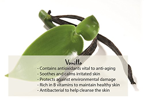 THE BENEFITS OF VANILLA ARE REVEALED in this lush bubble bath. Not only does the warm scent of vanilla mixed with lavender fill the room to lull you off into a peaceful state, but the skin also immensely benefits from the anti-aging, antibacterial properties of vanilla. Vanilla is rich in B vitamins like niacin, thiamin and vitamin B6 to maintain healthy looking and feeling skin. The antioxidants help to prevent the signs of aging and protect the skin against environmental damages.