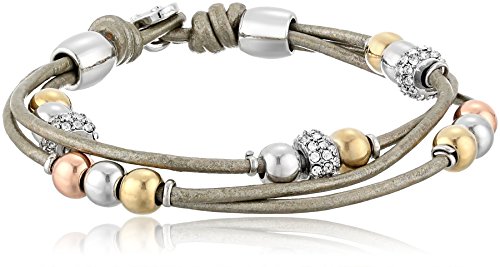 Classic and versatile, this striking wrist wrap is this season's most essential accessory. It features a multitude of grey leather strands accented with glistening rondel beads.Feature