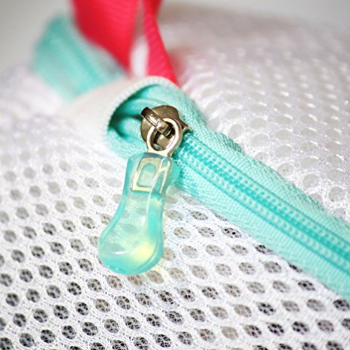 - PLASTIC FRAMES INTEGRATED at the top and bottom of each bag to prevent your precious bras from getting crushed, helping to maintain their shape ★ RELIABLE ZIPPER stays secure throughout the wash cycle ★ ELASTIC ZIPPER GUARD holds the stainless steel slider in place for a safer, quieter wash ★ HOT PINK RIBBON HANG LOOP for convenient drying and storing of the bag after use