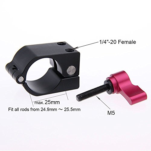 -. Feature : 25mmロッドクランプサイズ:直径25.5㎜。直径24.9mm ~ 25.5mmまでのロッド システムに適用しています。 / ロッドクランプ適用:DJI Ronin-M、Freefly MOVI、全て25mmパイプ/ロッド / ボールヘッド:1/4インチおねじが付く、モニターなどANYおねじ1/4が付きカメラアクセサリに適用します。自由に傾斜、360°回転可能です。ロッドクランプがボールヘッドに接続面に1/4"ネジ穴 二つが付きます。 / 材質:高品質アルミニウム 表面処理技術:陽極メッキ(アルマイト) / カラー:本体が黒、ノブが赤いです。