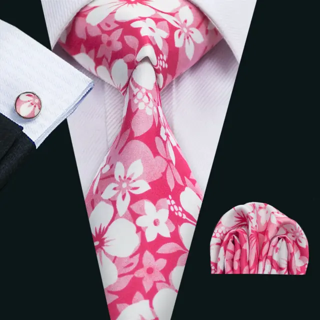 LS-1299 새로운 도착 남성 인쇄 실크 넥타이 고품질 브랜드 디자인 핑크 넥타이 목에 두르는 손수건 커프스 세트 웨딩